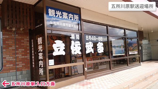 ご連絡後は、駅の正面玄関を出てすぐ左に隣接の観光案内所前にてお待ちください。
